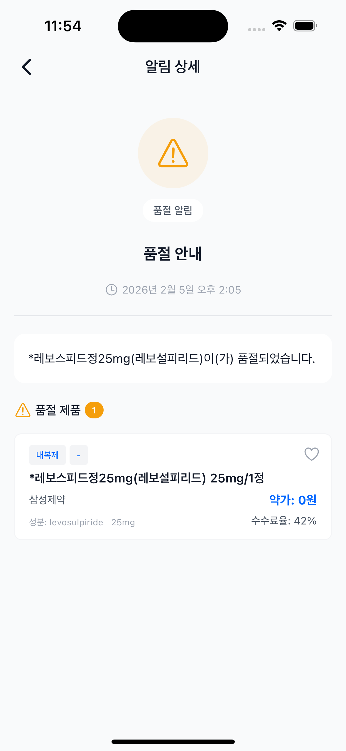 의약품 품절 정보를 실시간으로 수신하고 품절 제품을 확인합니다.